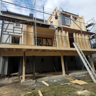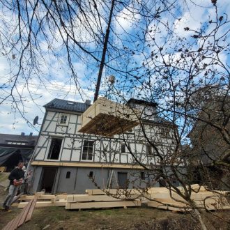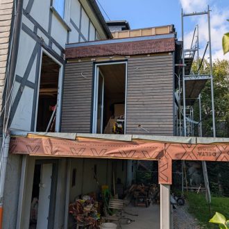 Ein Anbau an ein altes Fachwerkhaus.