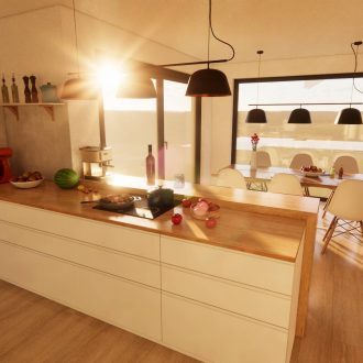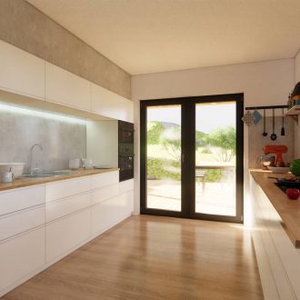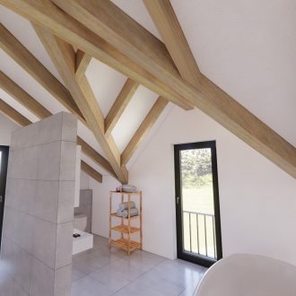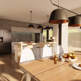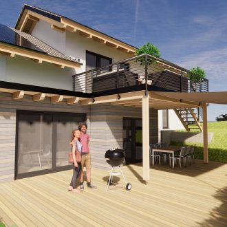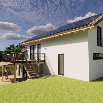 So entstand ein geräumiges Einfamilienhaus, dass sich harmonisch in die Landschaft einfügt.