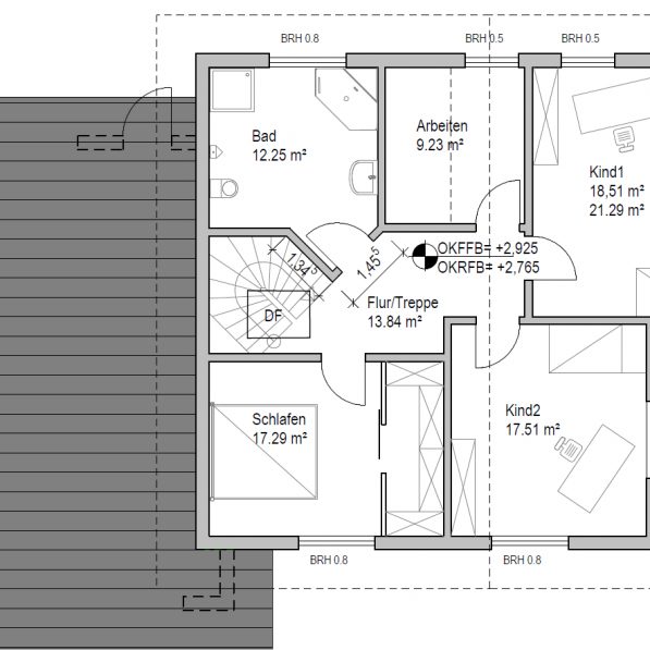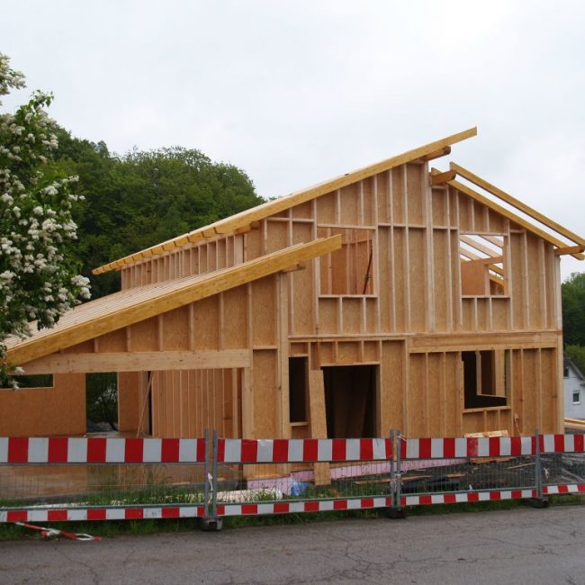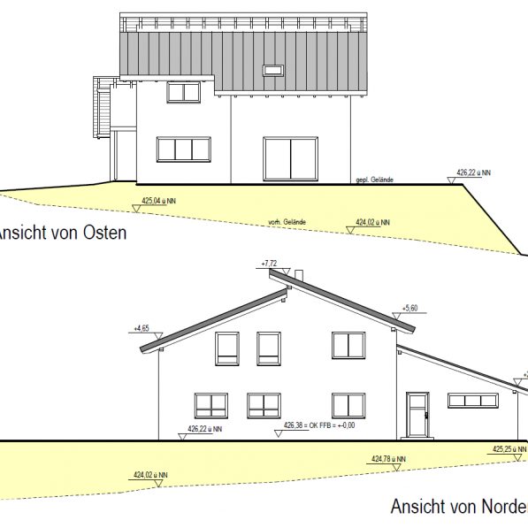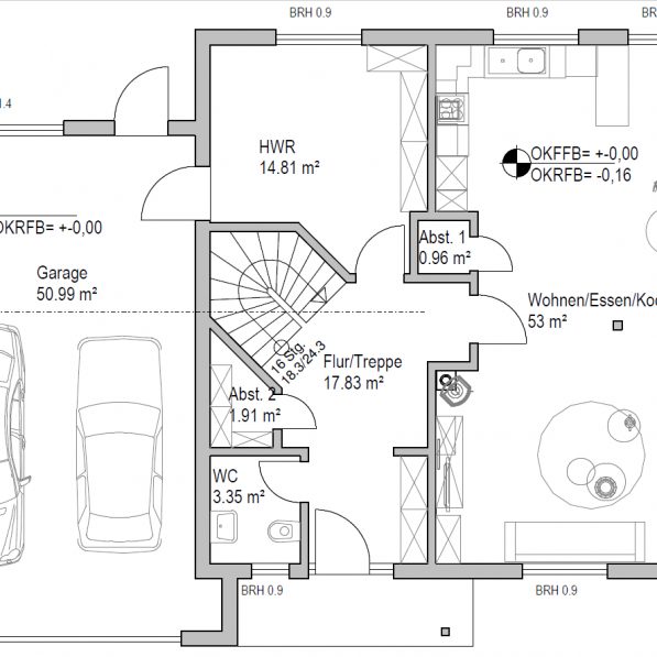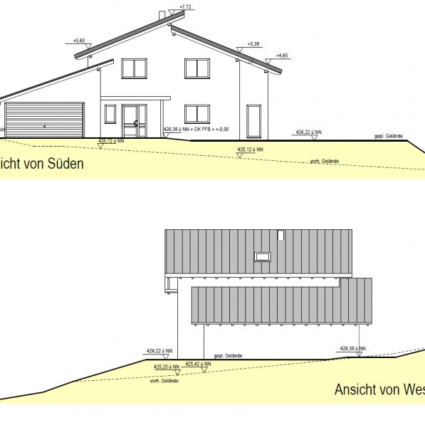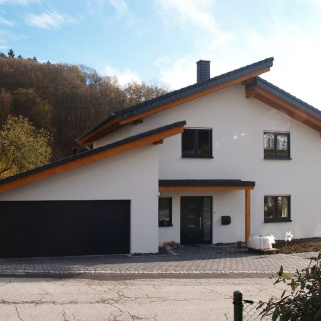 Einfamilienhaus mit großer Garage ohne Keller.