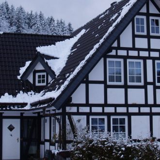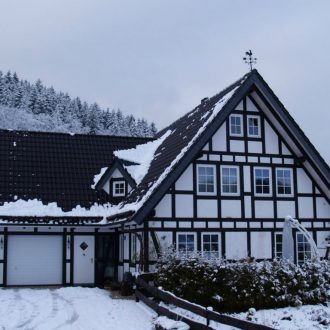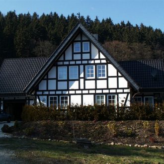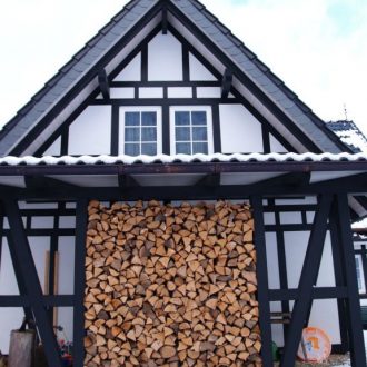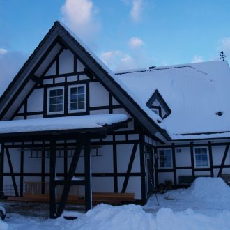 Ein zweischaliger Holzbau, der außen eine traditionelle Fachwerk-Fassade zeigt und innen alle Vorteile einer modernen Holzrahmen-Bauweise mit sich bringt.